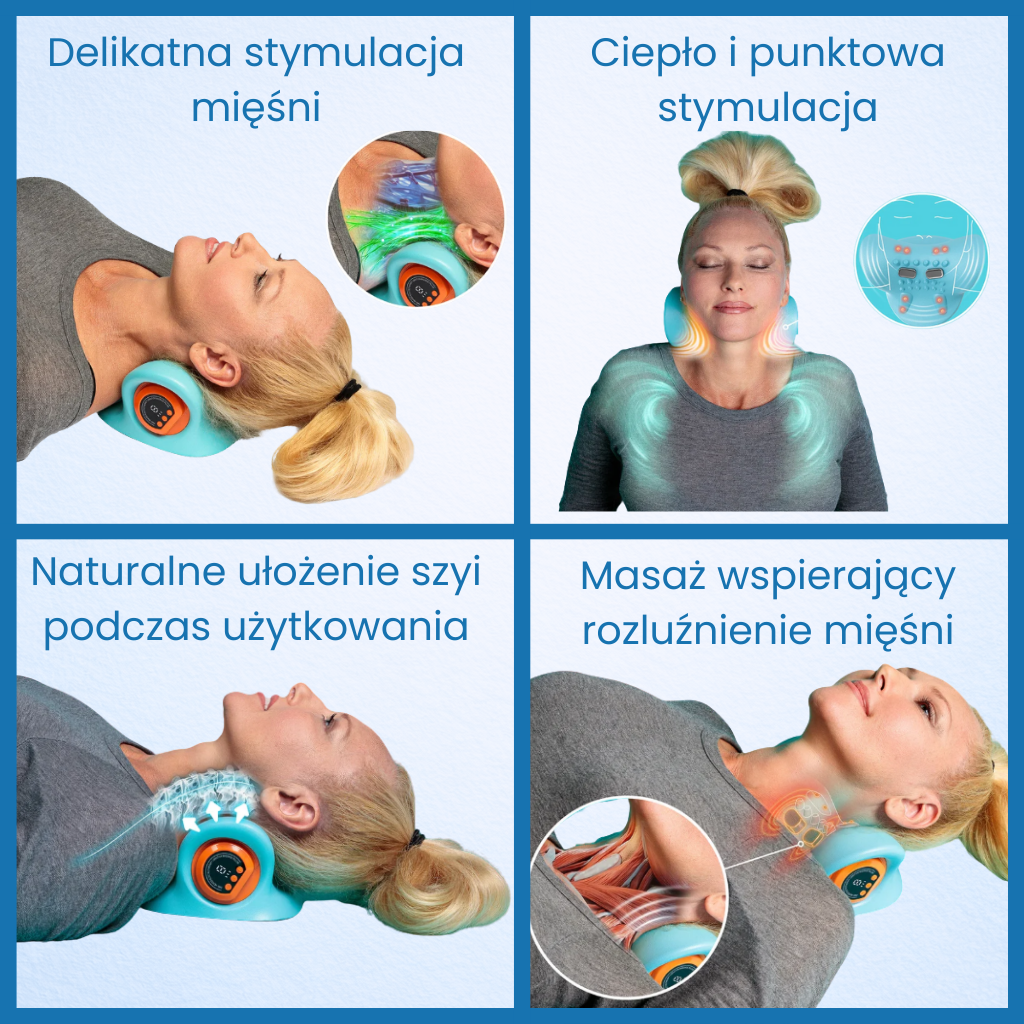 użytkowników zauważa mniejsze napięcie i dyskomfort szyi już po pierwszym użyciu.